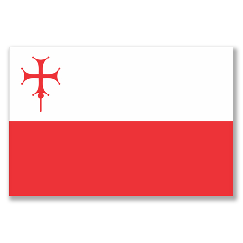 დროშა ჰორიზონტალურად არის გაყოფილი თეთრ და მეწამულ ველებად. თეთრი ველის მარჯვენა მხარეს გამოსახულია შტანდარტის ტიპის მეწამული ჯვარი. დროშის პროპორციაა 2:3.